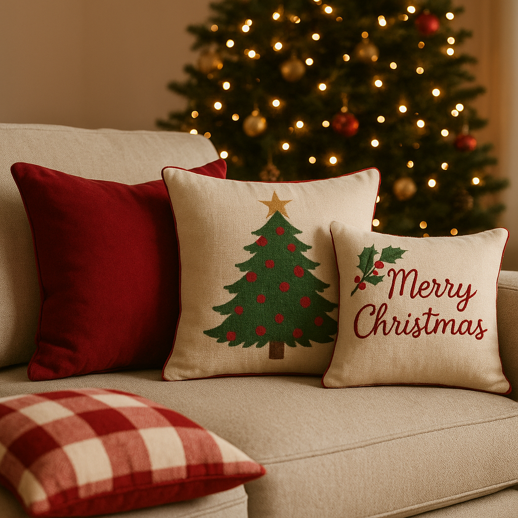 En interiores modernos o minimalistas, opta por tejidos lisos con colores de temporada. En espacios más clásicos, los estampados discretos con motivos navideños pueden enriquecer la decoración del hogar en Navidad sin resultar excesivos.